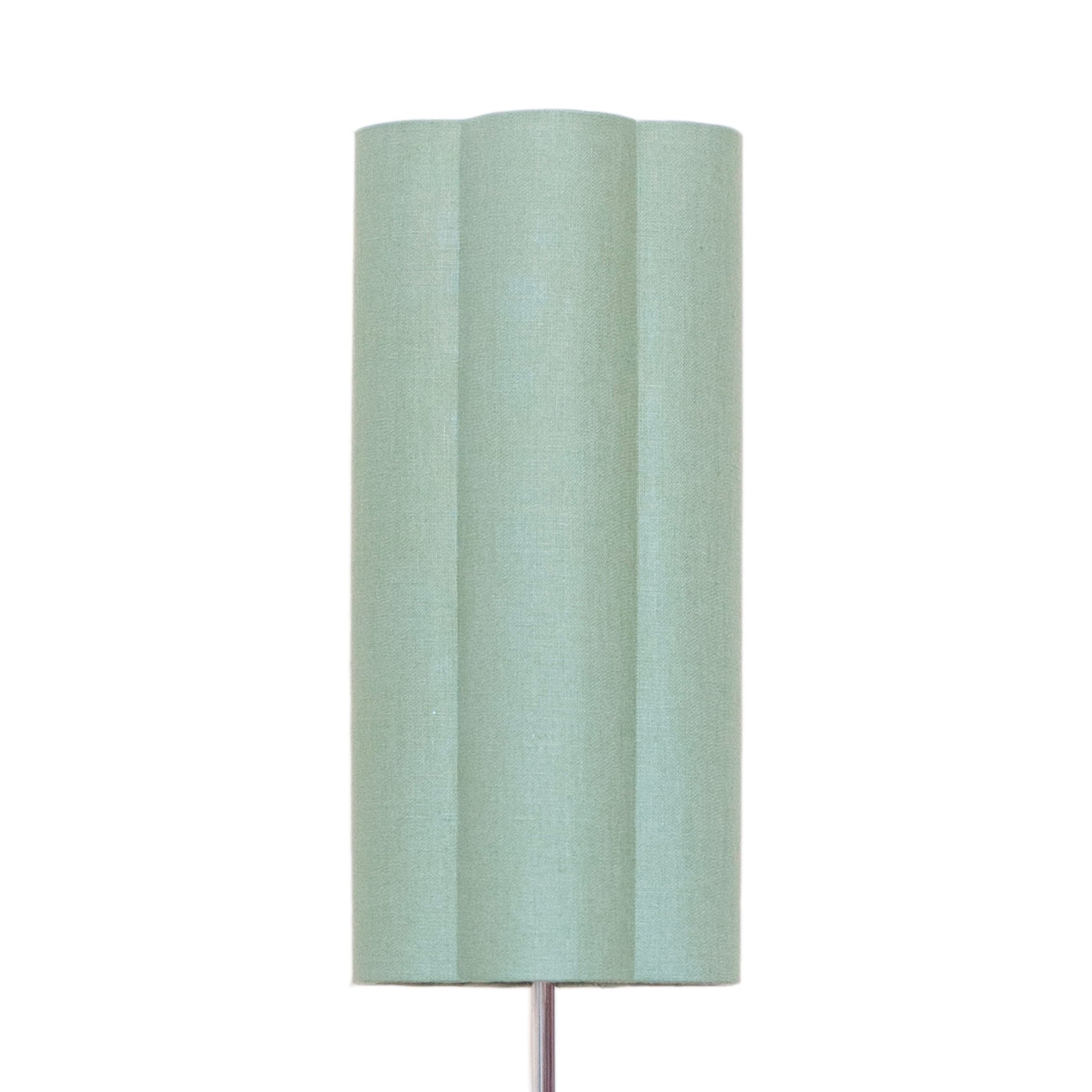 With its tall lines and playful scalloped shade, this handmade lampshade brings a subtle nod to mid-century design and floral form. Crafted in Celadon Green Irish Linen, the lampshade’s daisy-inspired silhouette adds texture and a sense of calm.